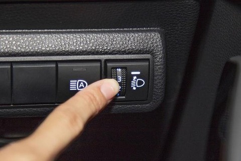 ヘッドランプのロービームの光軸を調整するスイッチ。ヘッドランプの光軸は、荷室に重い荷物を積んだ時や加速時に上向きとなり、対向車に眩惑を与えてしまうため、これを調整するためのスイッチ。