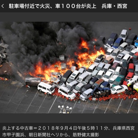 【悲報】西宮の駐車場で火災、クルマ約100台が炎上