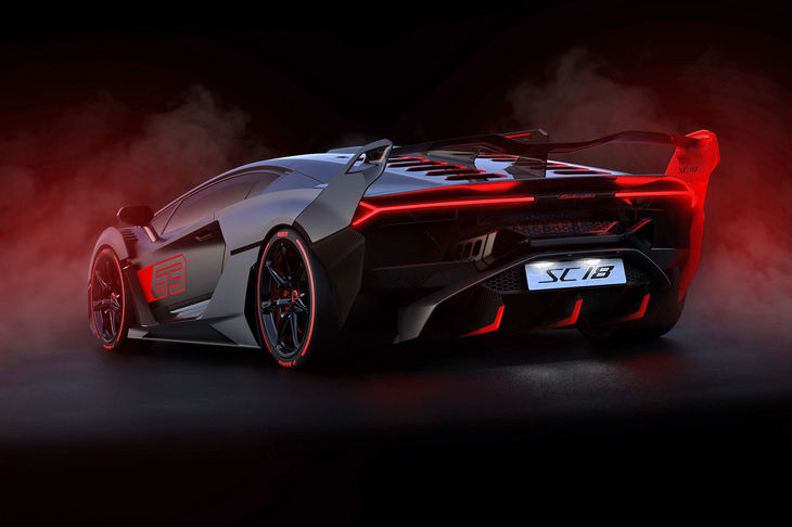 ランボルギーニSC18は、同社のモータースポーツ部門であるスクアドラ・コルセの手になるスーパースポーツ。レースでの経験を生かして開発された、専用のエアロパーツが与えられている。具体的には、「ウラカンGT3 EVO」を思わせるエアインテークや、「ウラカン スーパートロフェオEVO」に着想を得たフェンダーとエアスクープ、カーボン製のリアウイングなどが特徴である。