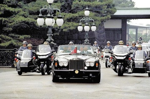 平成の代替わりに伴う1990年のパレードでは、政府が英国車ロールス・ロイスの黒いオープンカーを約4000万円で購入。93年の皇太子ご夫妻の結婚パレードでも使われた。