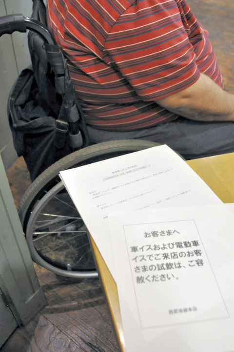 一昨年4月施行の障害者差別解消法は8条で「事業者は障害を理由に不当な差別的扱いをし、障害者の権利利益を侵害してはならない」と定めており、男性側は後日、文書で改めて抗議した。西武側は文書で回答し、2年前に開いた「フランス展」の会場で、ワインを試飲した電動車いす利用者が他の客の足をひいたり、販売員の足に接触したりする事故が起きたと説明。客と従業員の安全確保のため、車いす利用者にアルコールの試飲を遠慮するよう掲示などで求めており、「必ずしも不当な差別に該当するものとは判断していない」と反論した。