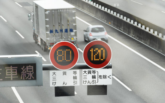 大型トラック、トレーラーなどの「大型貨物自動車」は積載する貨物によって走行が不安定になる恐れがあるため、試行対象から除かれて80キロ規制が維持される。
