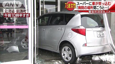 スーパーの入り口に乗用車が突っ込みました。73歳の女性は「病院の場所を聞こうと思ったが、ブレーキとアクセルを踏み間違えた」と話しています。
