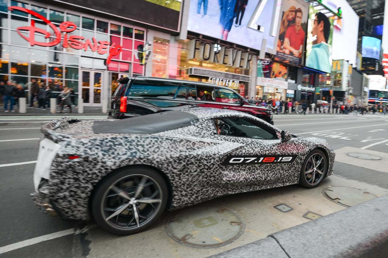 ”ゼネラルモーターズ(GM)は4月11日、シボレーブランドのフラッグシップモデルである『コルベット』の第8世代を2019年7月18日に発表することを明らかにした。アメリカを代表するスポーツカーであり、ハイパフォーマンスカー市場とともにモータースポーツの世界でも過去7世代に渡って世界中のファンから愛されてきたコルベットの新型が、いよいよ今夏登場する。1954年に登場した初代から数えて8代目となり、“C8”の型式が与えられると考えられる次世代型では、エンジンの搭載位置が従来のフロントボンネット下からコクピット後部に変更されることが予想されている。今回ニューヨークに登場したマシンもやはり、ミッドシップレイアウトを思わせるプロポーションであり、コルベットの歴史に新たな章が加わることは間違いないようだ。この日、コルベットの開発チーフエンジニアを務めるタッジ・ジュッター氏とGMのメアリー・バーラ会長兼CEOを乗せたカモフラージュ柄の次世代型コルベットは、公開日を予告するバナーを左右のドアに掲げてタイムズスクエア近くを走行。多くのニューヨーカーの注目を集めるなかで、新たな“コルベット伝説”の始まりを予感させた。”